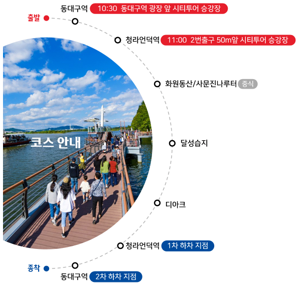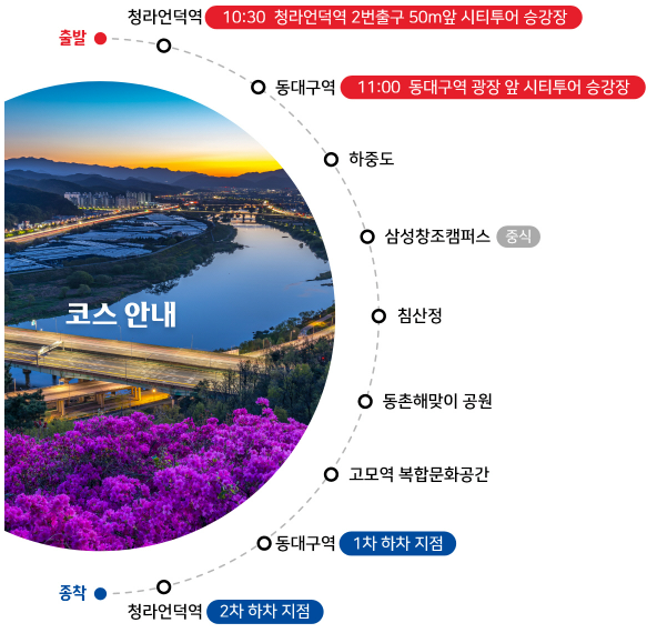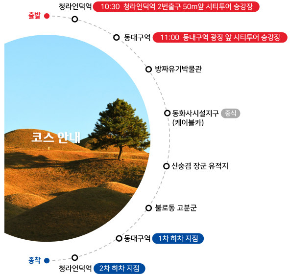 - 운행시간 : 09:30 ~ 17:50 (1일 7회 운행 / 1시간 간격 순환 운행)