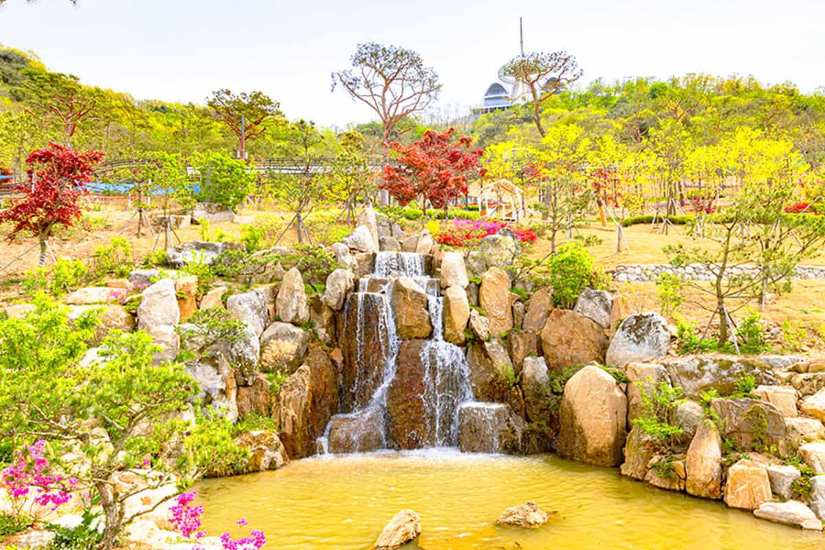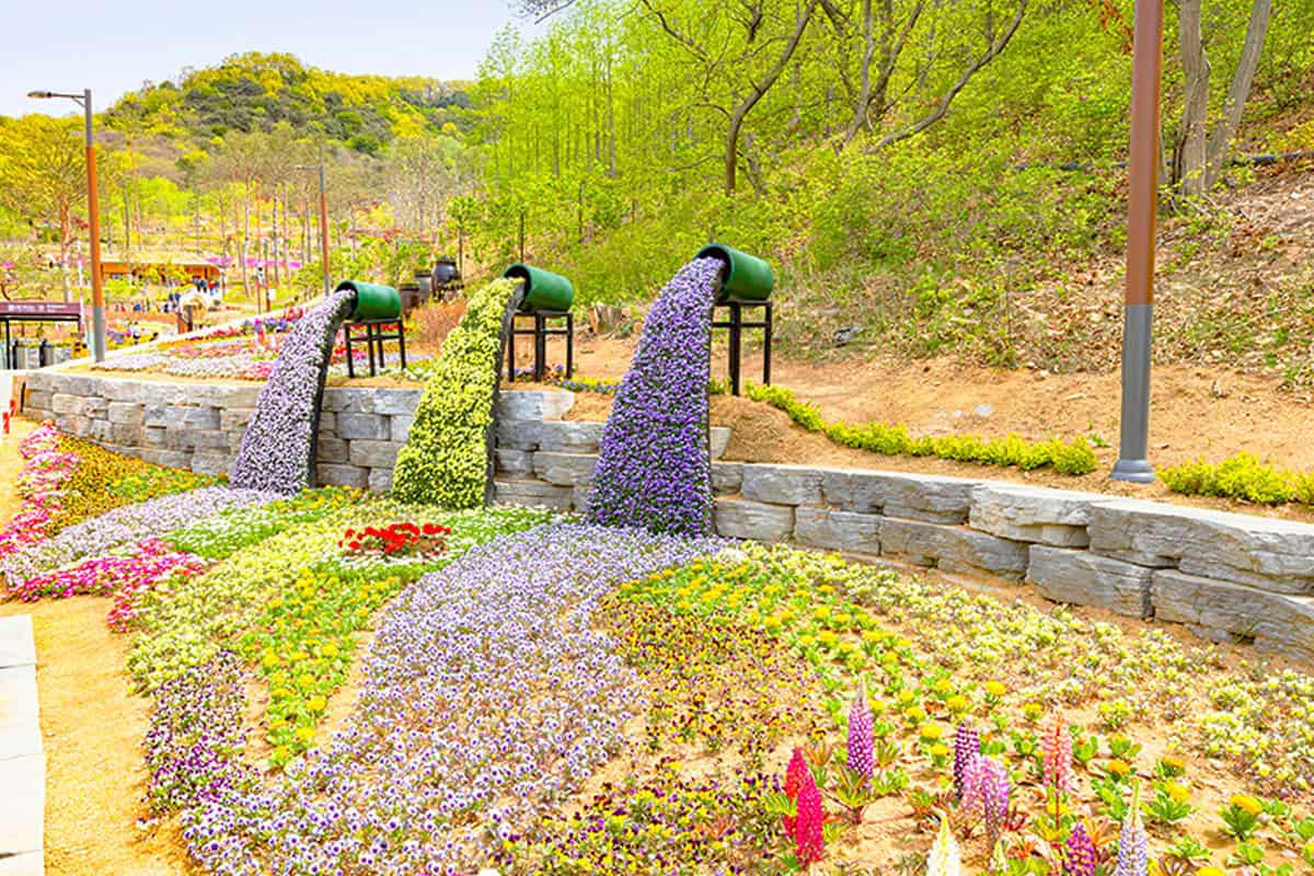 ②전망대 아래로는 사계절 테마에 맞춘 오색 정원이 조성되어 있어, 봄에는 꽃과 초록이, 가을에는 단풍과 국화가 어우러지는 풍경을 감상할 수 있다.