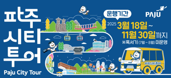 요일별로 다양하게 즐기는 파주시티투어 버스와 함께 편안하고 즐겁게 파주를 여행해 보세요.