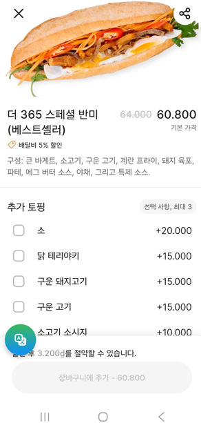 - 배달받고자 하는 음식 선택 후 장바구니에 추가,