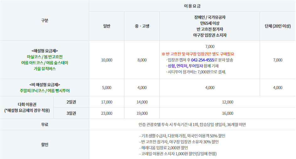 ▶ 온라인 구매: 대전시티투어 홈페이지 내 카드 결제