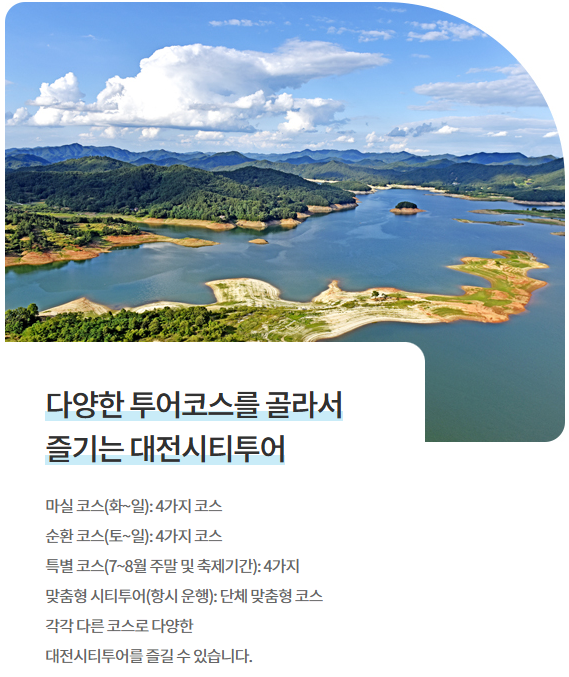 더 많은 정보를 원하시면 대전시티투어 홈페이지 또는 대전관광 홈페이지 방문하세요.