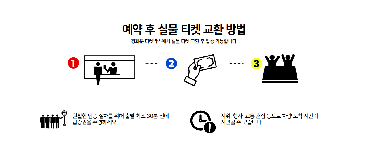 - 전 좌석 미지정 좌석입니다. 선착순 탑승이니 조금 서둘러 오시기를 추천드립니다.