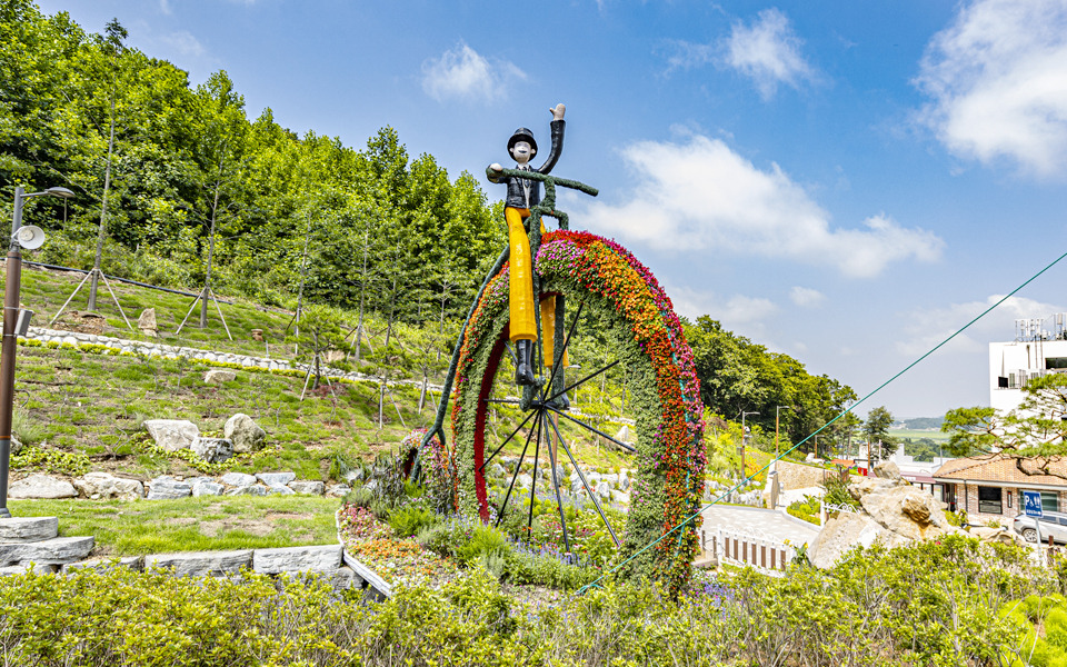②전망대 아래로는 사계절 테마에 맞춘 오색 정원이 조성되어 있어, 봄에는 꽃과 초록이, 가을에는 단풍과 국화가 어우러지는 풍경을 감상할 수 있다.